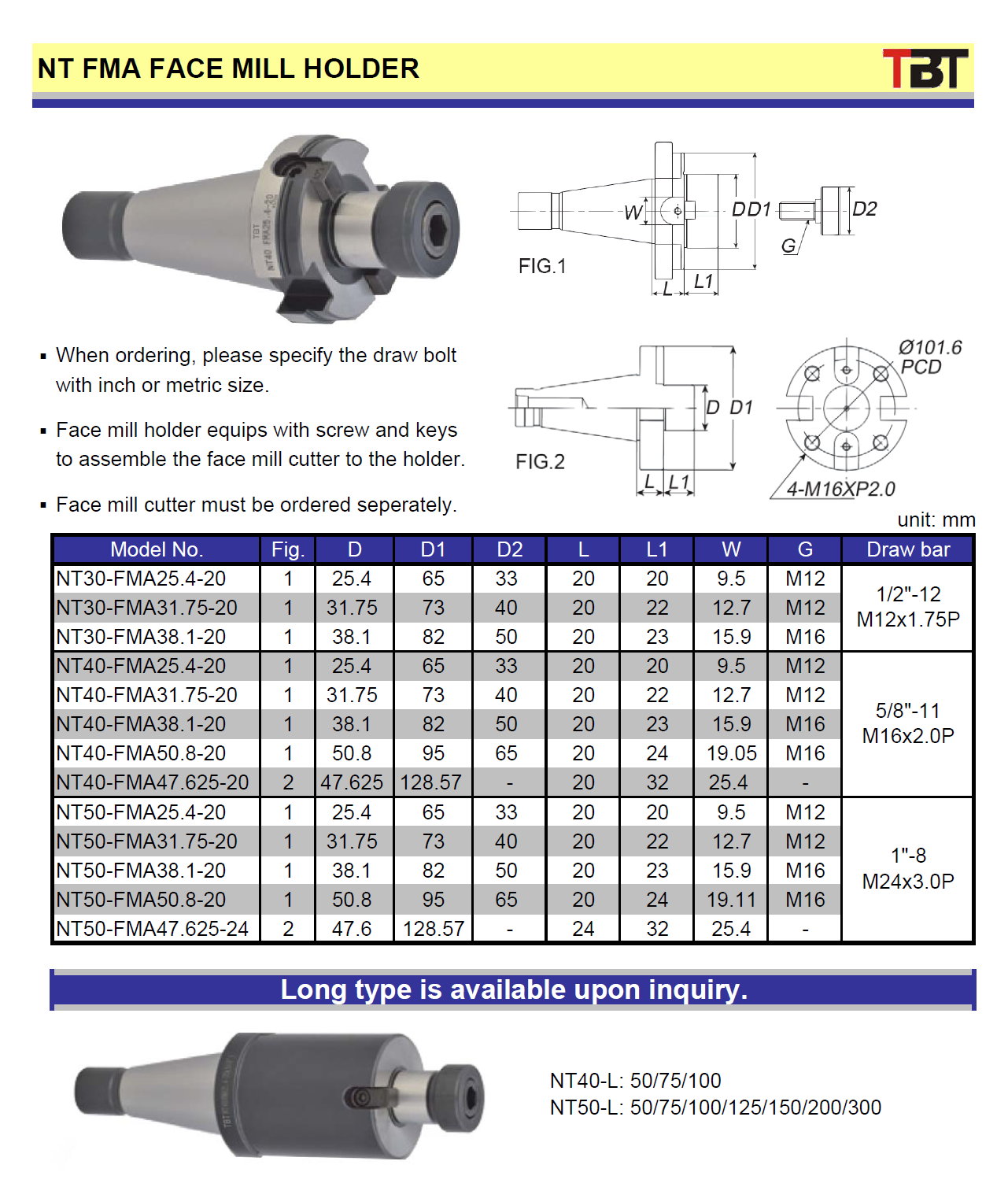NT / FMA face mill holder