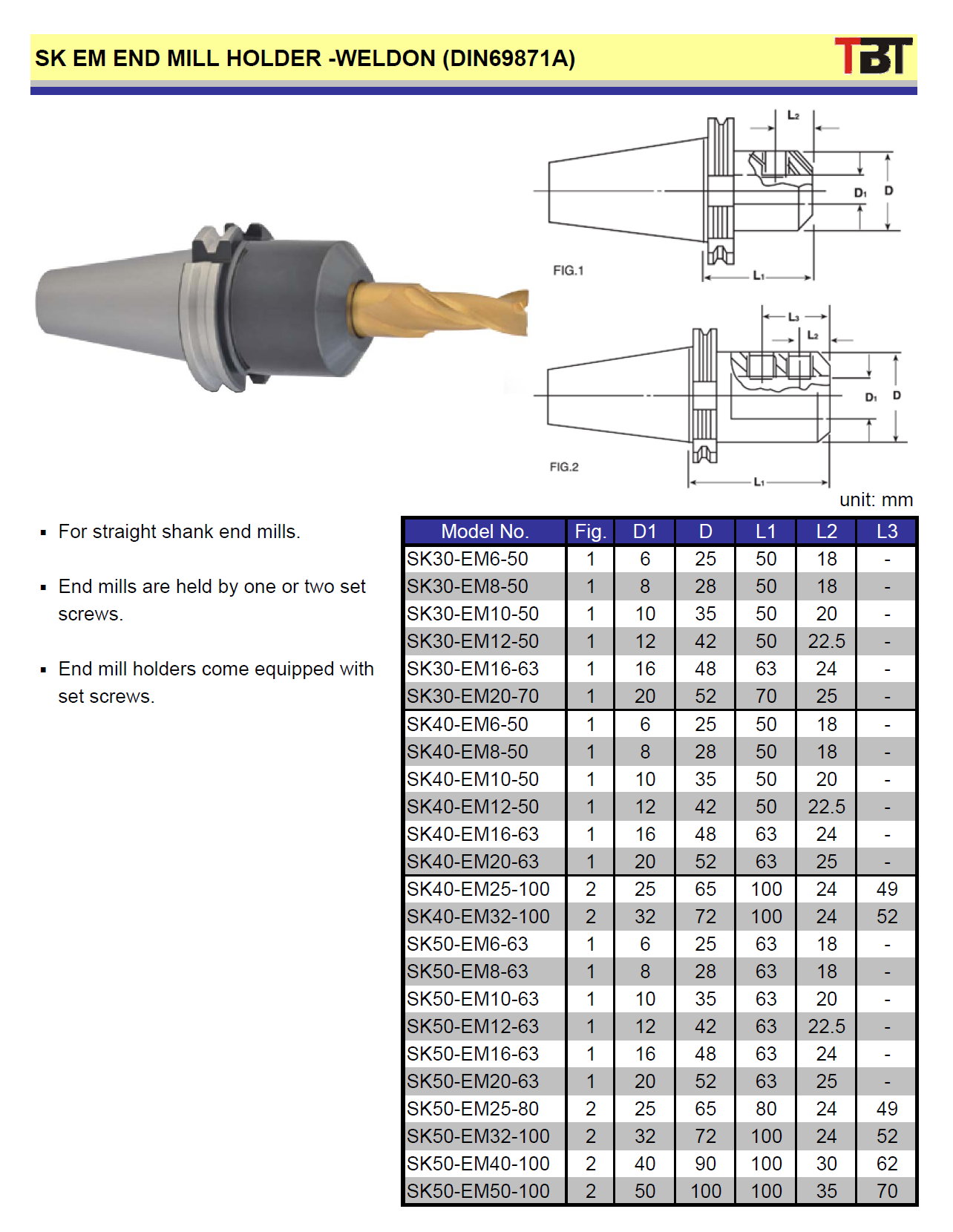 SK / EM end mill holder